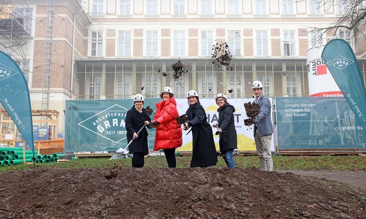 Am 28. Februar fand der Spatenstich für die Sanierung und Erweiterung des Schulinfrastrukturprojekts in der Feuchterslebengasse 65 statt.