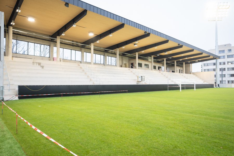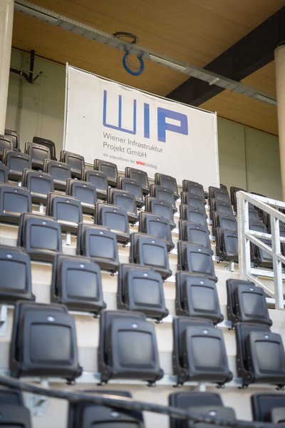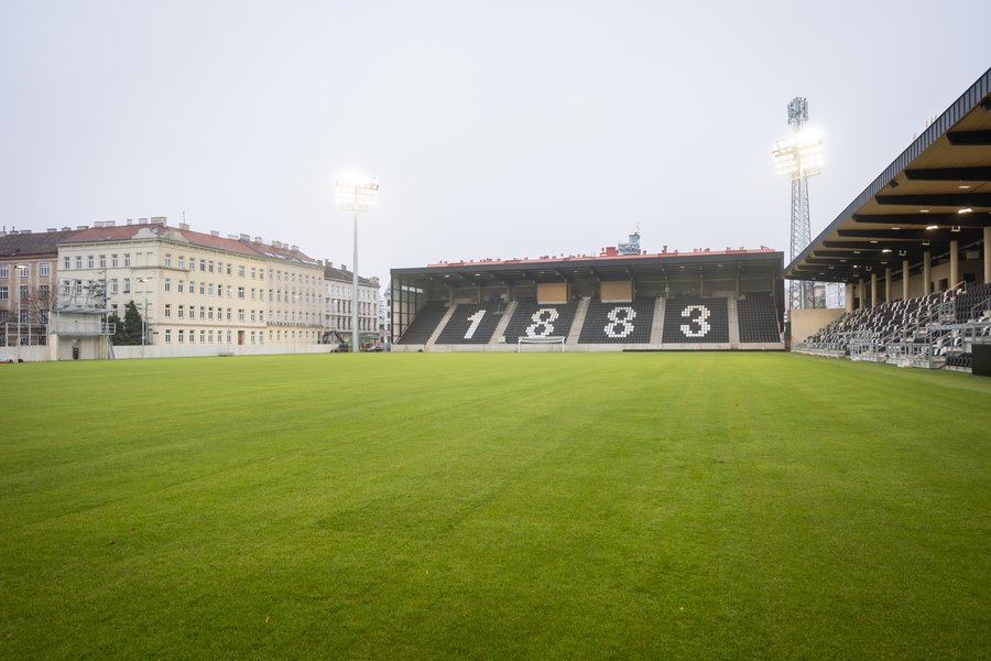 Eine der ältesten Sportstätten Wiens erhält seit dem Spatenstich im Oktober 2024 ein modernes Gesicht. Die Erneuerung der Haupttribüne und der Friedhofstribüne erfolgt nach nachhaltigen Standards mit extensiver Dachbegrünung. Die bestehende Südtribüne, die sogenannte „Blaue Tribüne“, wird umfassend saniert und mit neuen Sanitäranlagen sowie zwei Kiosken ausgestattet. Nach Abschluss der Arbeiten wird das Stadion 5.622 Besucher*innen bei nationalen Spielen und 4.645 Besucher*innen bei internationalen Begegnungen fassen. Die bauliche Fertigstellung wird Ende 2025 erfolgen, die vollständige Inbetriebnahme im zweiten Quartal 2026.